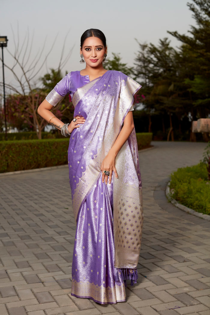 • Rich Woven Pallu: The richly woven pallu enhances the saree’s opulent look.