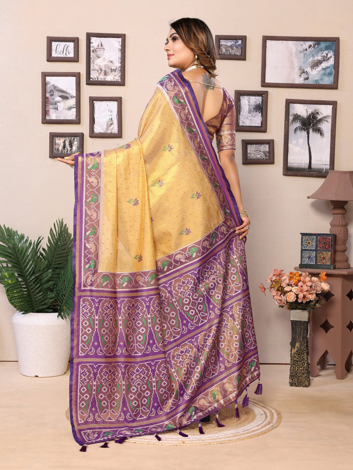 Cream Pure Banarasi Tissue Silk Saree with Patola Woven Borders