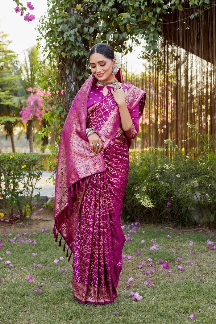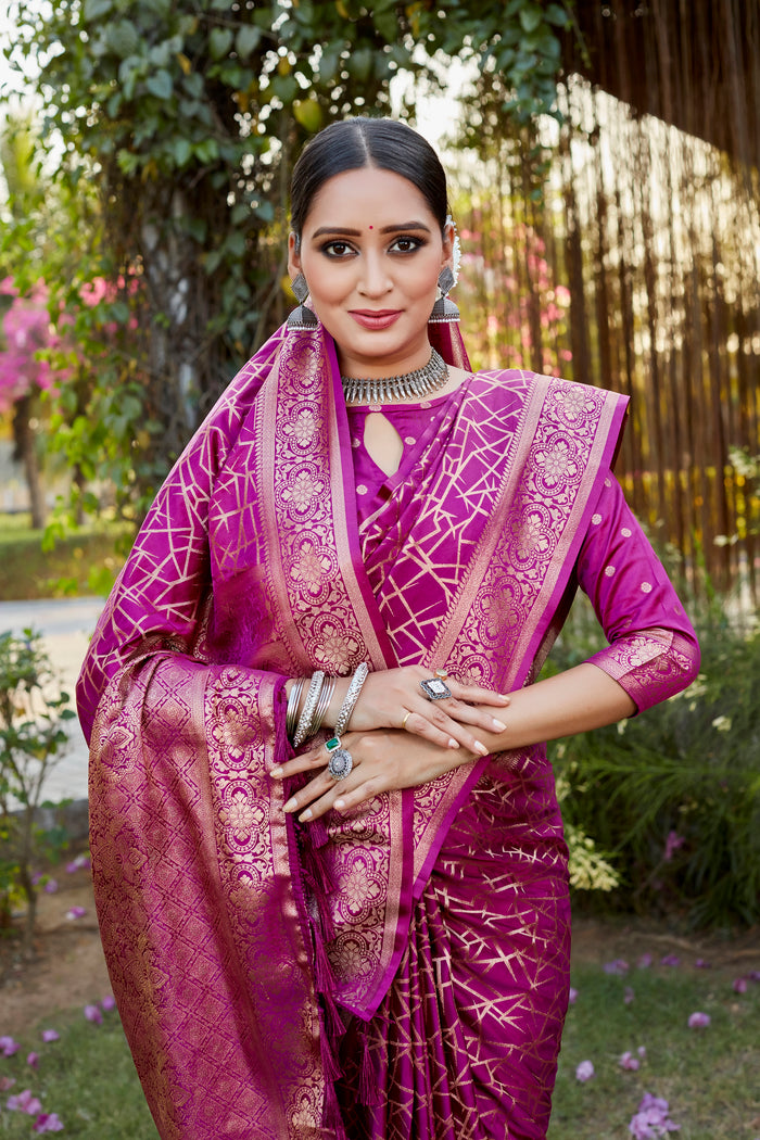 Dark Pink Kanjivaram Soft Satin Silk Saree For Women