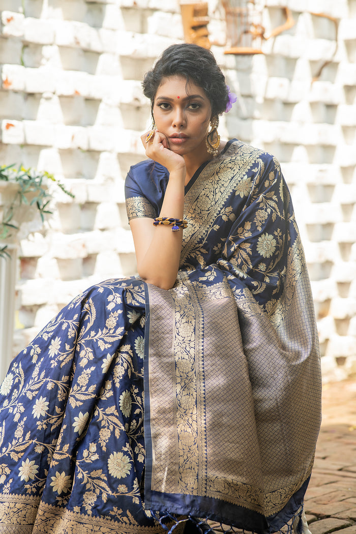 • All-over Pure Zari Weaves for a rich, traditional look