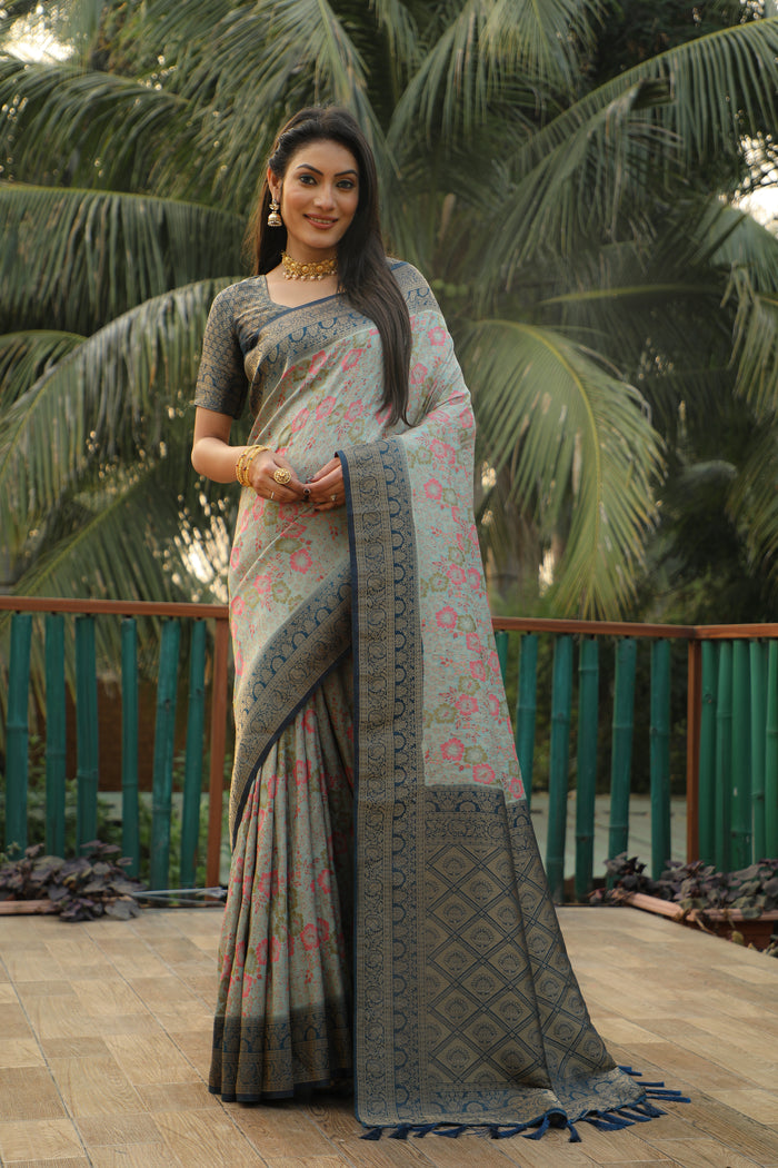 • Heavy Kanjivaram Design: For a truly opulent appearance, the saree is paired with a heavy Kanjivaram design that stands out in any setting.