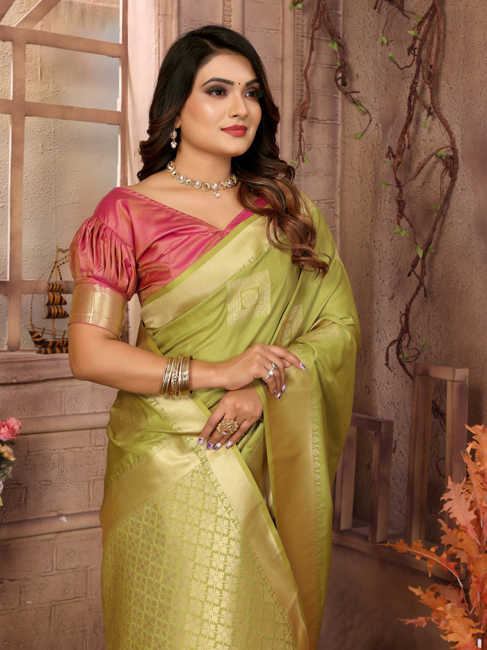 • Rich Woven Pallu with intricate Zari Borders on both sides