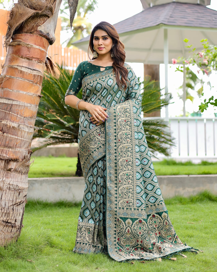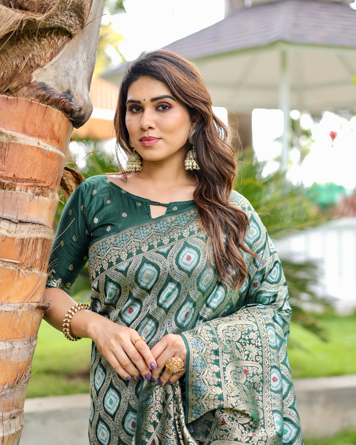 Experience the epitome of elegance with our Pure Kanjivaram Pattu Saree, featuring exquisite Zari weaving and a luxurious design. Crafted from authentic Kanjivaram Pattu fabric, this saree showcases intricate weaving patterns all over the body, highlighted by a heavy border for added grandeur. Each saree is complemented by a rich weaving pallu and a contrast blouse piece with a matching border, ensuring a sophisticated look for any special occasion. With three types of Zari weaving, including embossed patterns, this saree combines tradition with opulence. The included unstitched blouse piece offers customization to achieve a perfect fit.