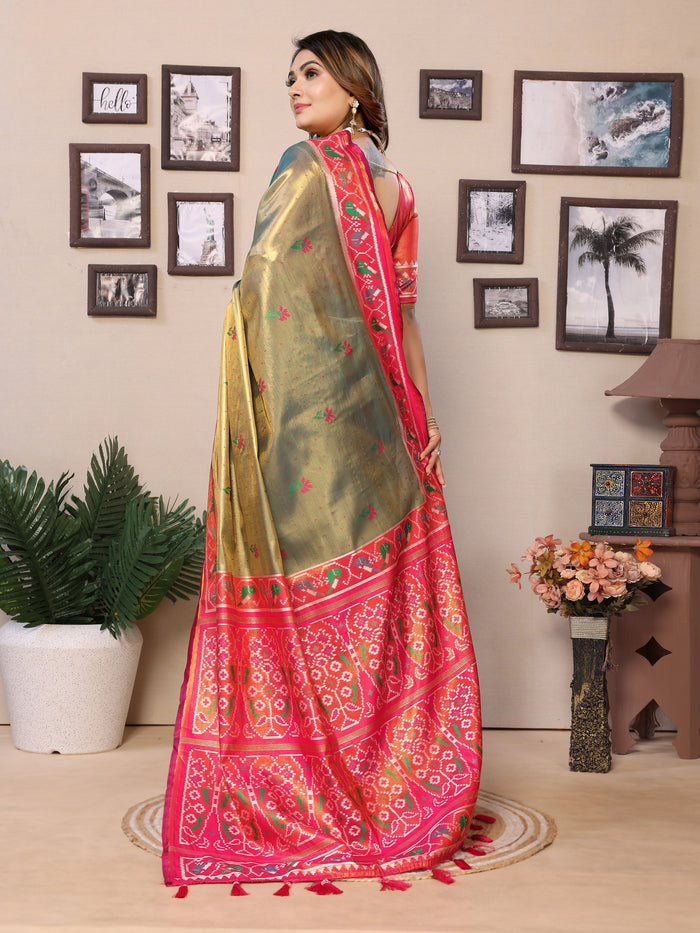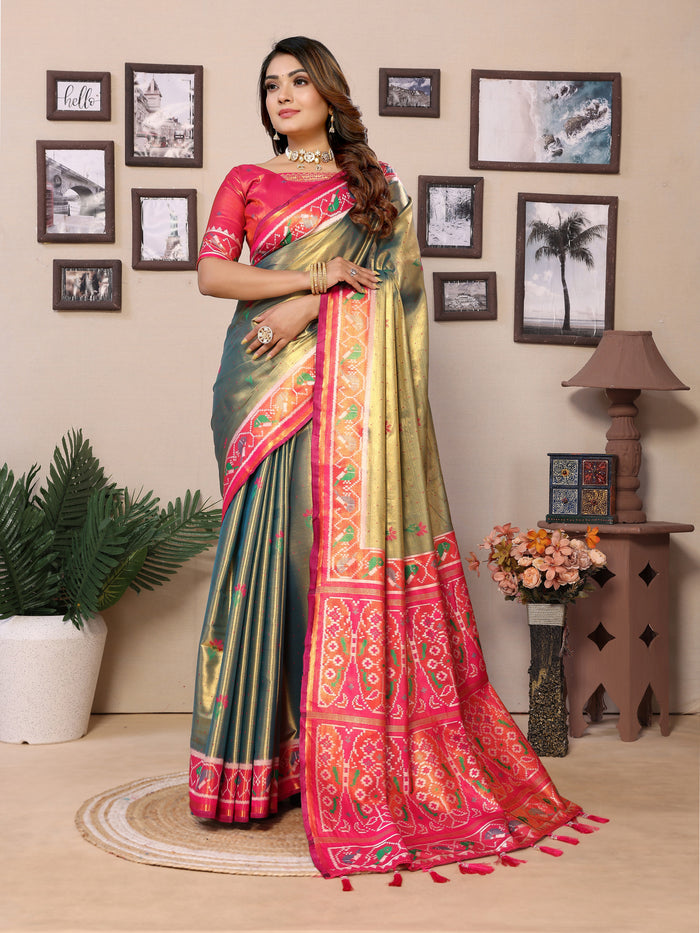Green Color Pure Banarasi Tissue Silk Saree with Patola Woven Borders