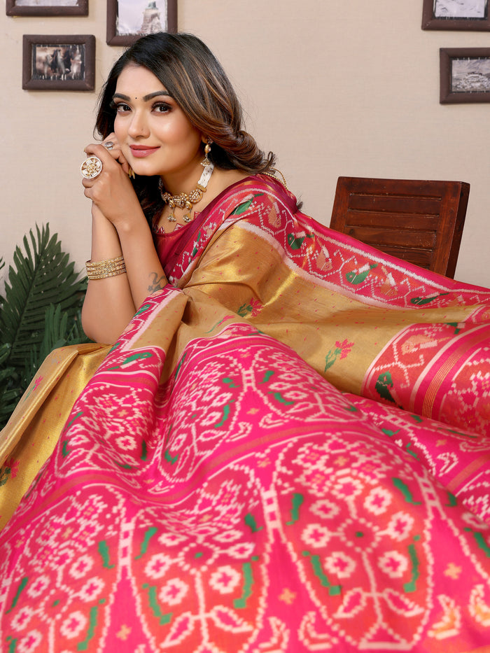 Mustard Pure Banarasi Tissue Silk Saree with Patola Woven Borders