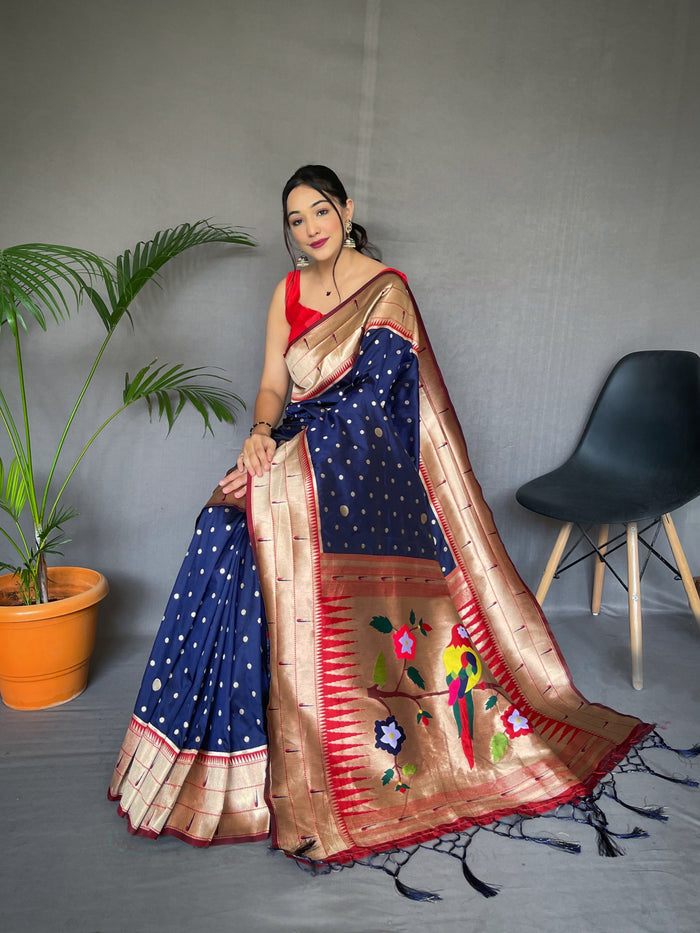 Navy Color Pure Paithani Silk Saree