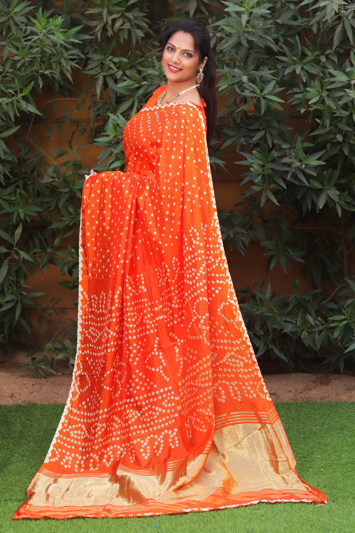 Orange Pure Bandhej Silk Saree with Lagdi Patta Zari Weaving