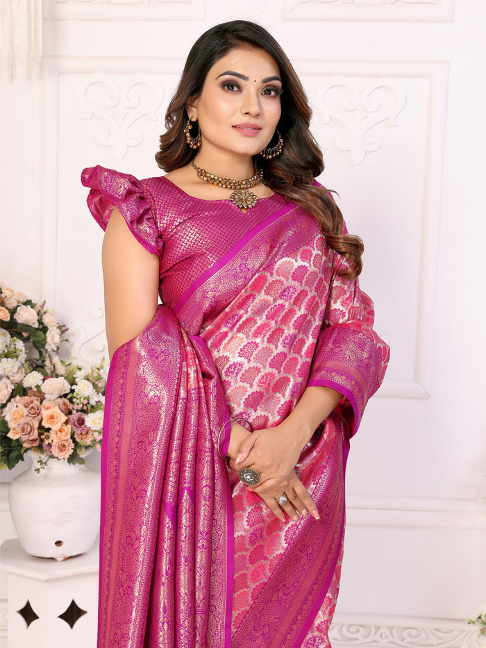 Shop now to own this beautiful Banarasi silk saree and celebrate your special moments in style!