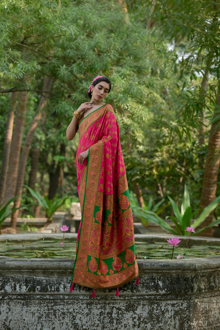 Pink Pashmina Silk Kashmiri Weaving Saree