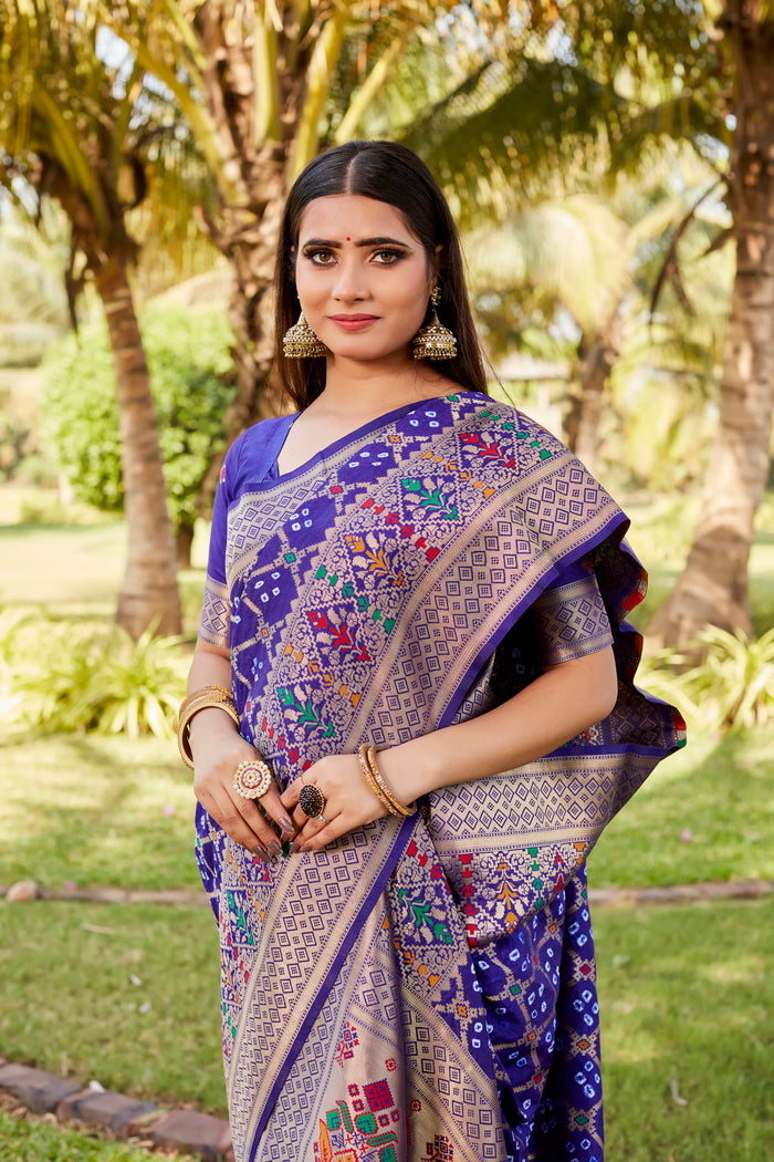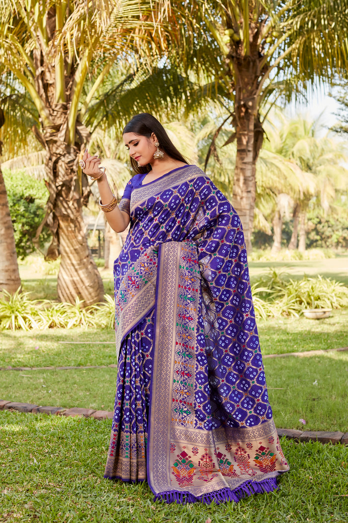 Premium Gharchola Bandhej Silk Sarees, crafted to offer unparalleled style and comfort. These high-quality Bandhej silk drapes are designed to make a statement with their stunning Bandhej design and intricate Minakari Jari weaving.