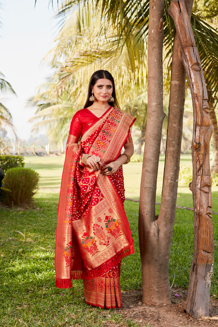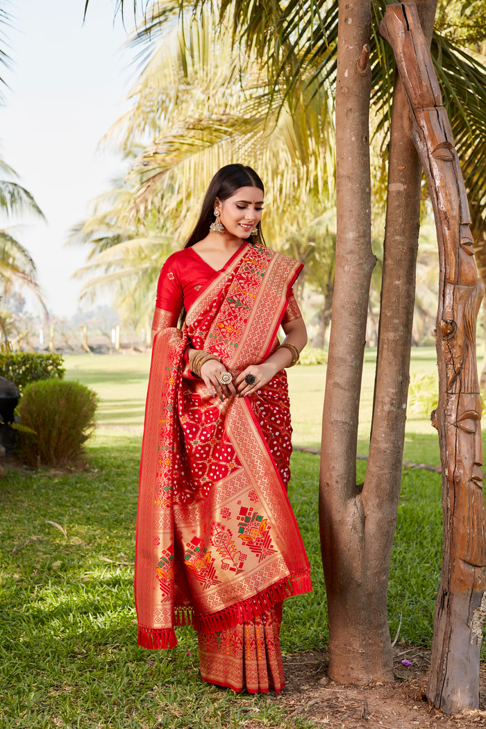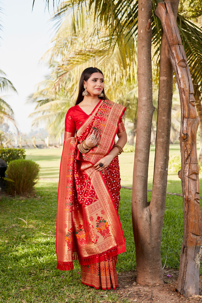 Perfect for weddings, festive occasions, and special celebrations, these sarees are a timeless addition to your collection. Shop now to embrace the elegance of Gharchola Bandhej silk!