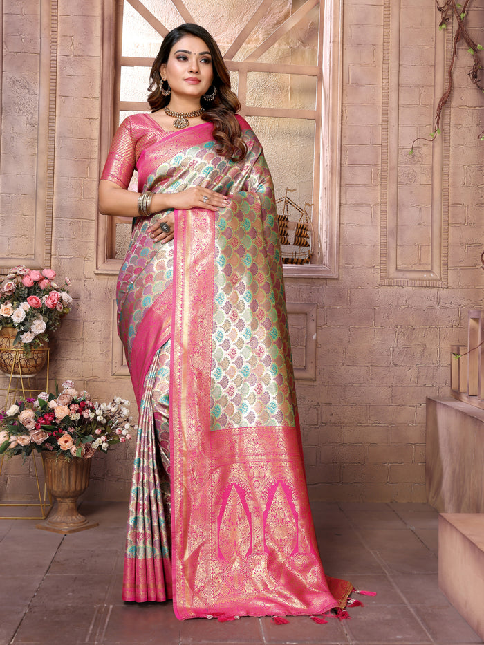 Shop now to own this beautiful Banarasi silk saree and celebrate your special moments in style!