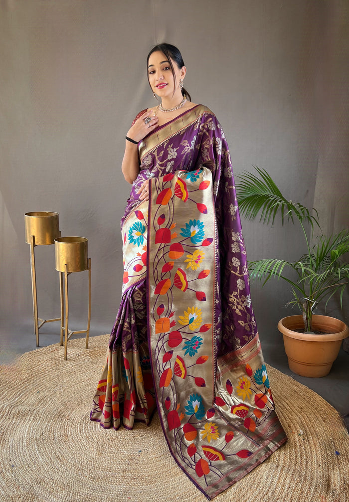 Immerse yourself in luxury with our pure soft Paithani silk saree, a masterpiece of traditional artistry and modern elegance. This saree showcases an exquisitely woven Paithani pallu, featuring intricate patterns that highlight the rich heritage of Paithani weaving. The saree is adorned with all-over 3D traditional design patterns, creating a striking visual effect across the entire body.